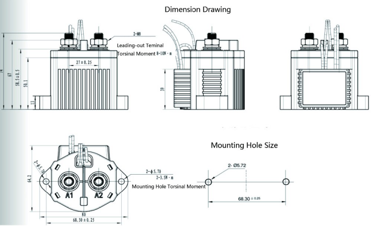 ADH200- E Tip 8-36 VDC 200A Iffrankar ta 'enerġija 1 LE IP67 Jużaw Għal iċċarġjar contactor Vetturi Tagħmir elettriku Aokai DC